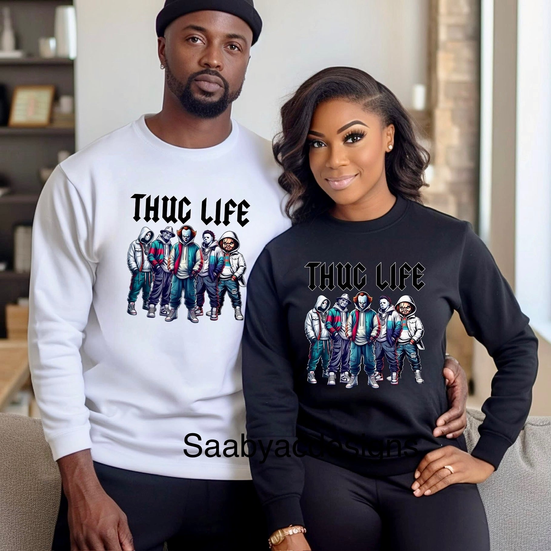 Get ready to scare up some fun this Halloween with our Thug Life tee! Featuring all your favorite horror movie villains, this shirt is sure to be a hit. With Freddie, Jason, Chucky, Michael Meyers, and the Ghost Face Killer, it's like a party on your shirt! (Who invited these guys?!)
